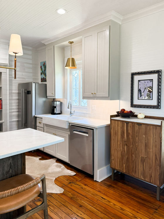 This historic 1930s cabin—originally part of the locally renowned Hunt's Cabins—was carefully relocated to its current site before the current resort was developed. When our client purchased the home, she was committed to restoring its original charm and honoring its storied past. The collaboration between client, contractor, and designer was a true dream team, united by their shared passion for historic architecture and a vision to celebrate, rather than conceal, the home’s character. Blending existing and new furnishings with her remarkable collection of local art, the result is an eclectic, soulful home that is truly one of a kind. ​